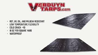 Each tarp is: * Waterproof *Heavy duty vinyl tarp material *20 Mil thickness *18 oz per square yard *Black Vinyl coated PVC material *Highly abrasion resistant ...