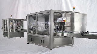 - Automatic liquid, oil, soda, juice bottle filling capping and sleeve shrinking machine